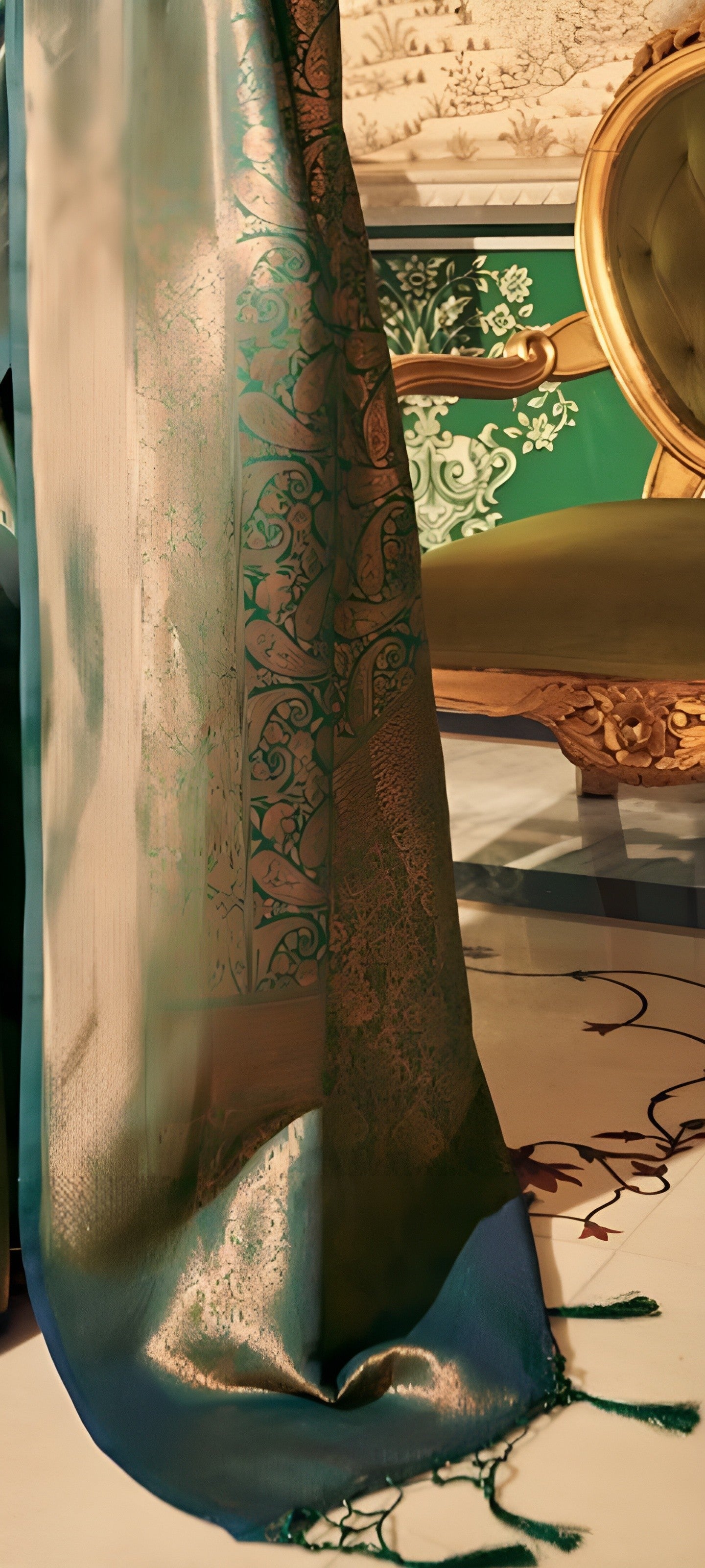 EKKTARA Saree For Women Dark Turquoise Kanjivaram Saree