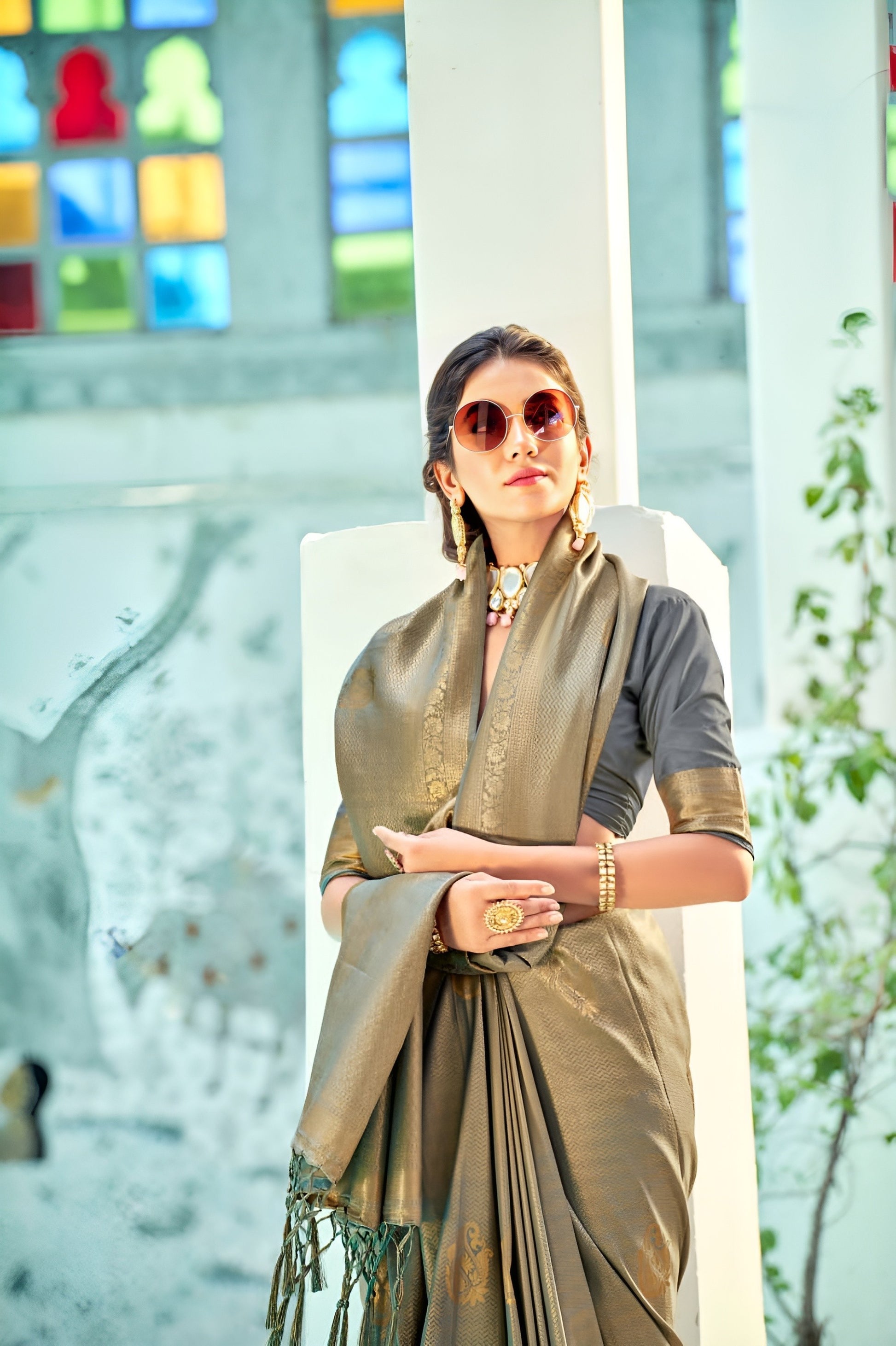 EKKTARA Saree For Women Golden Colour Kanjivaram Silk Saree With Unstitched Blouse