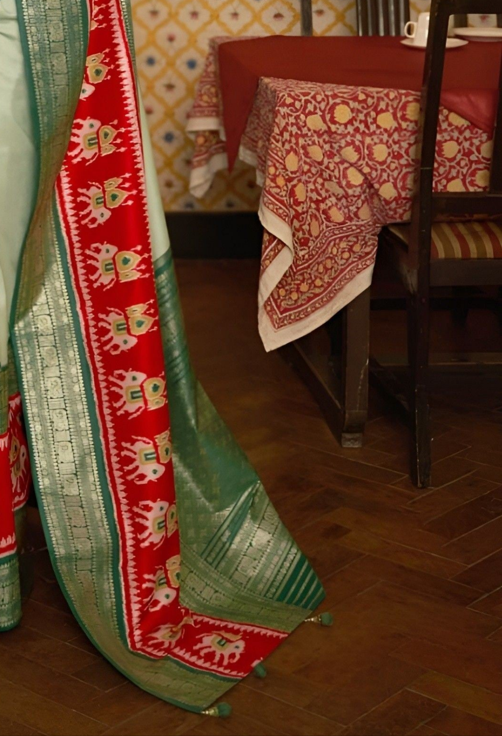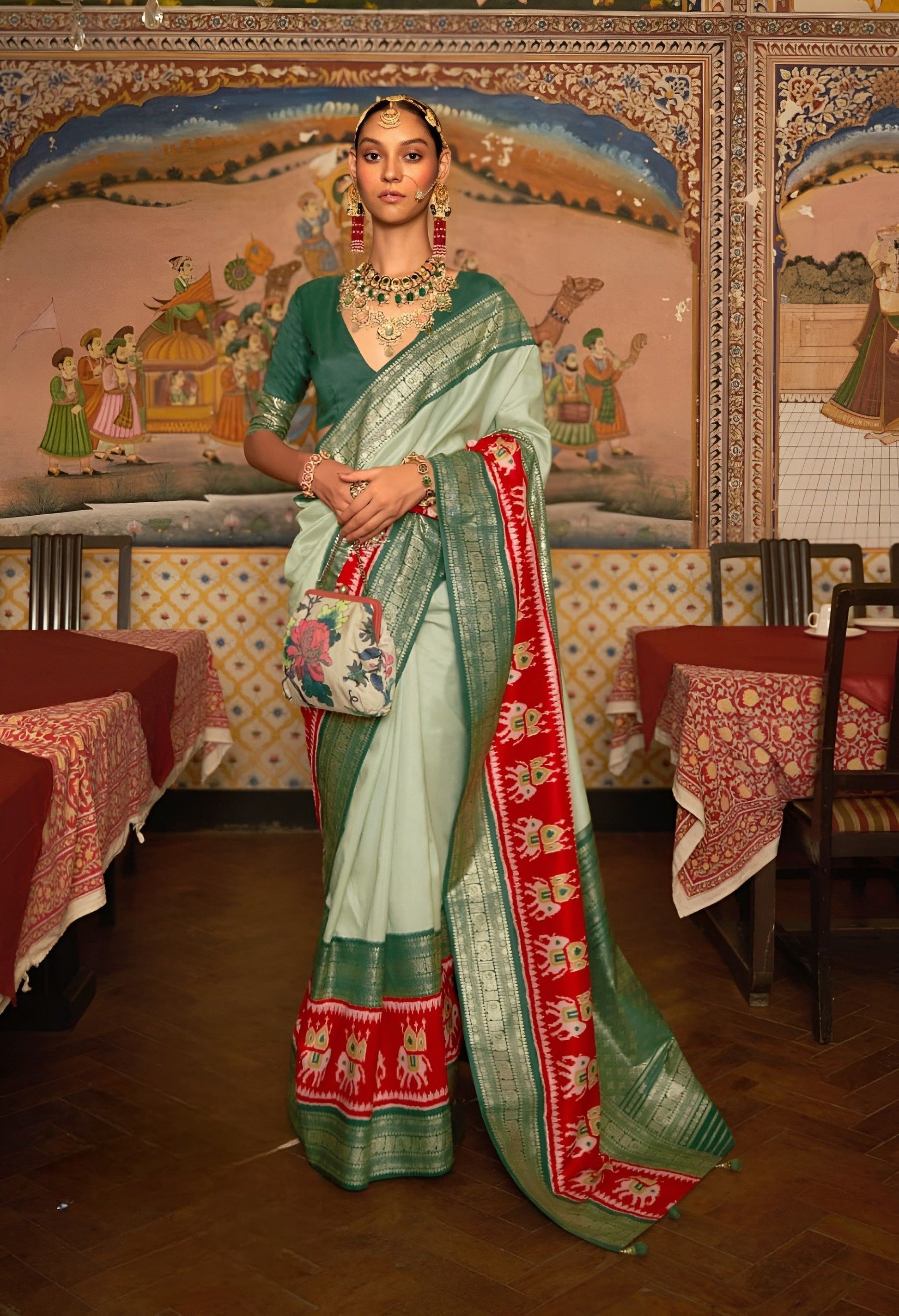 EKKTARA Saree For Women Green Colour Pure Silk Designer Patola Saree With Unstitched Blouse