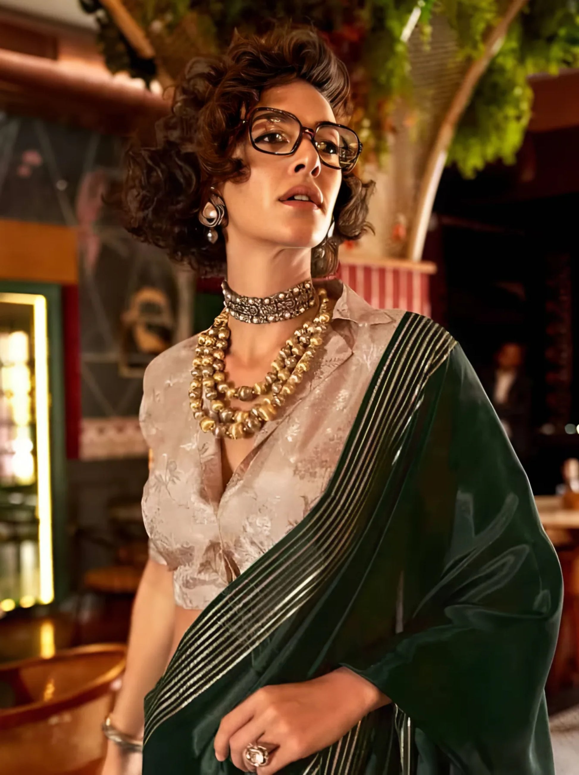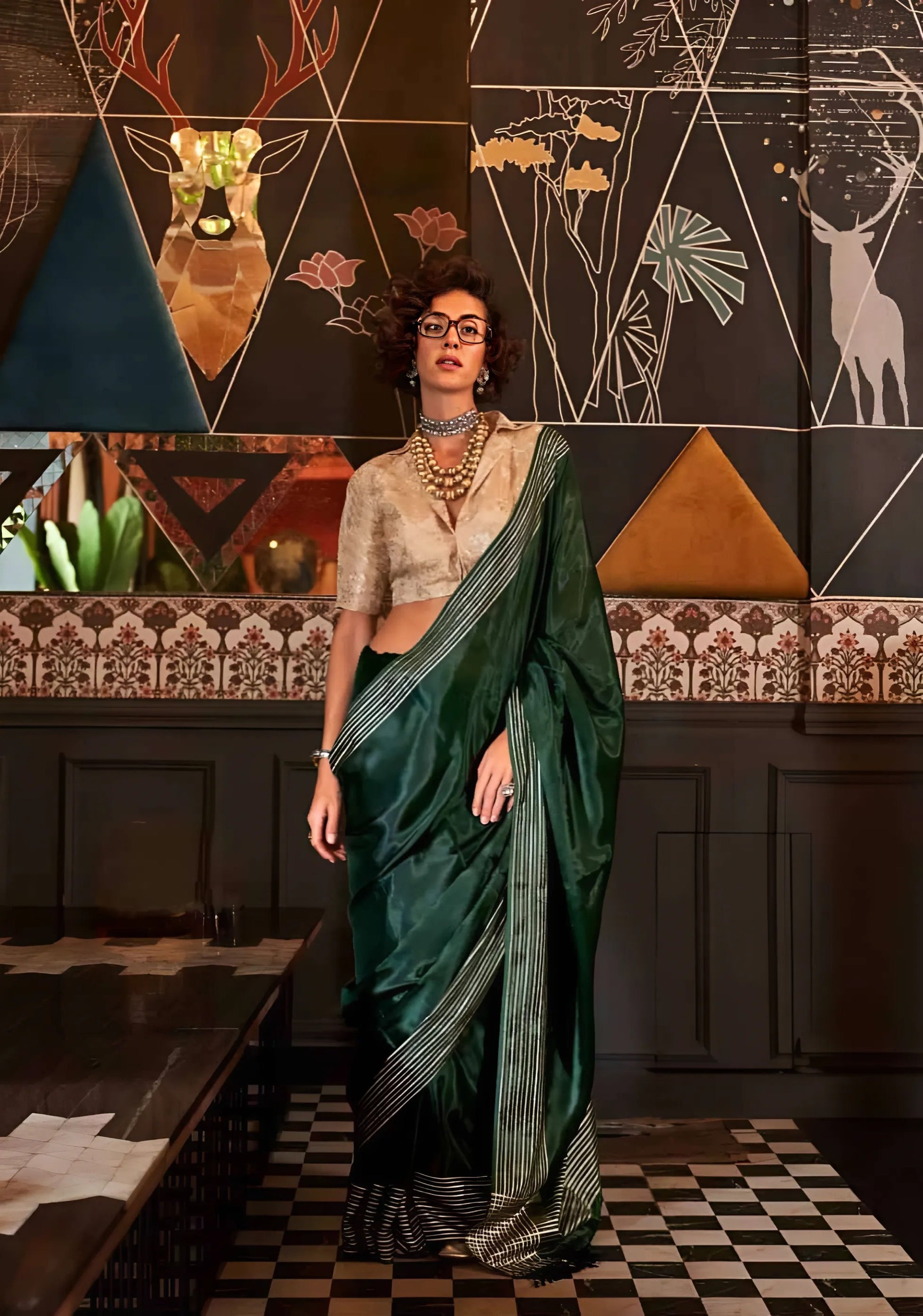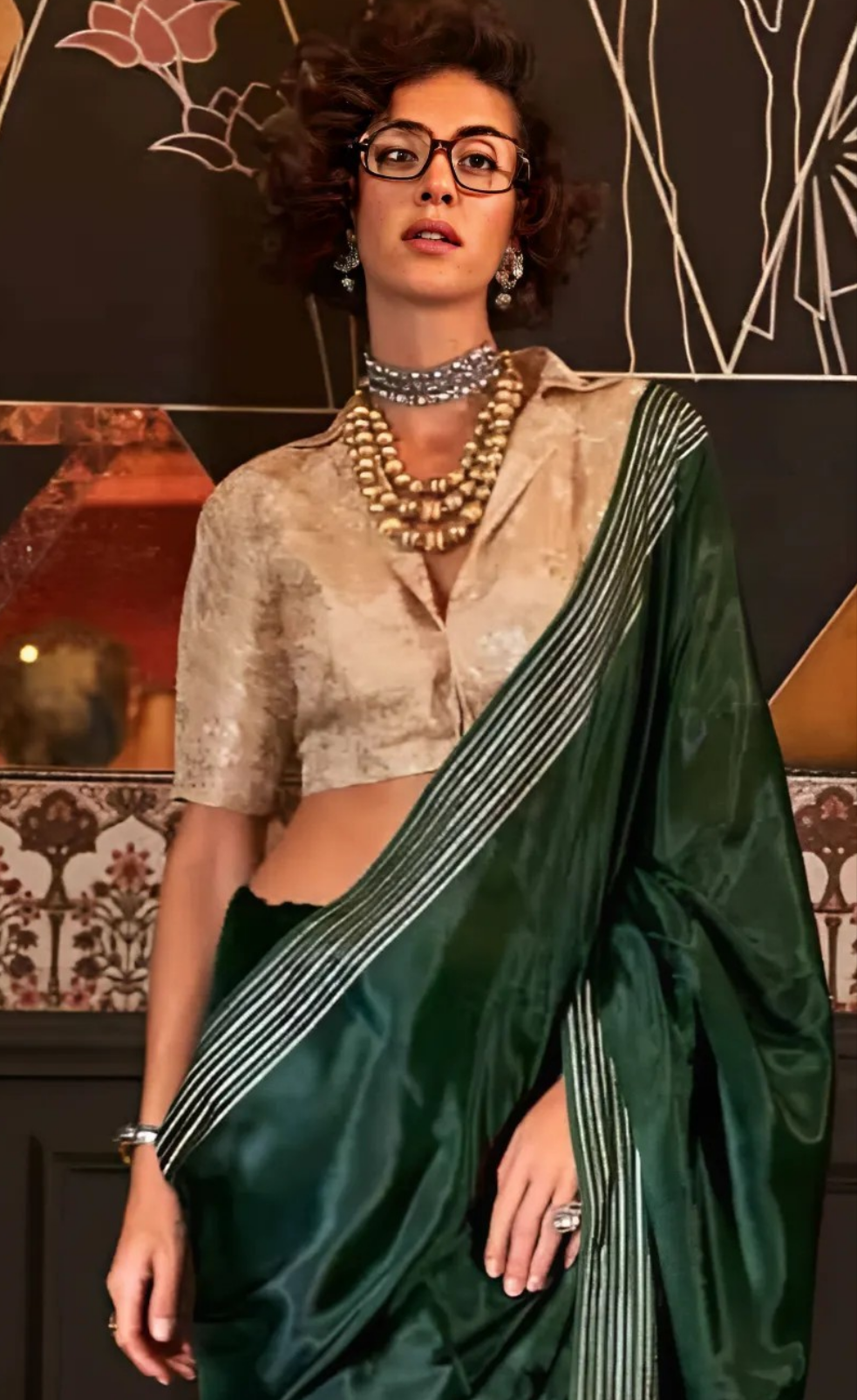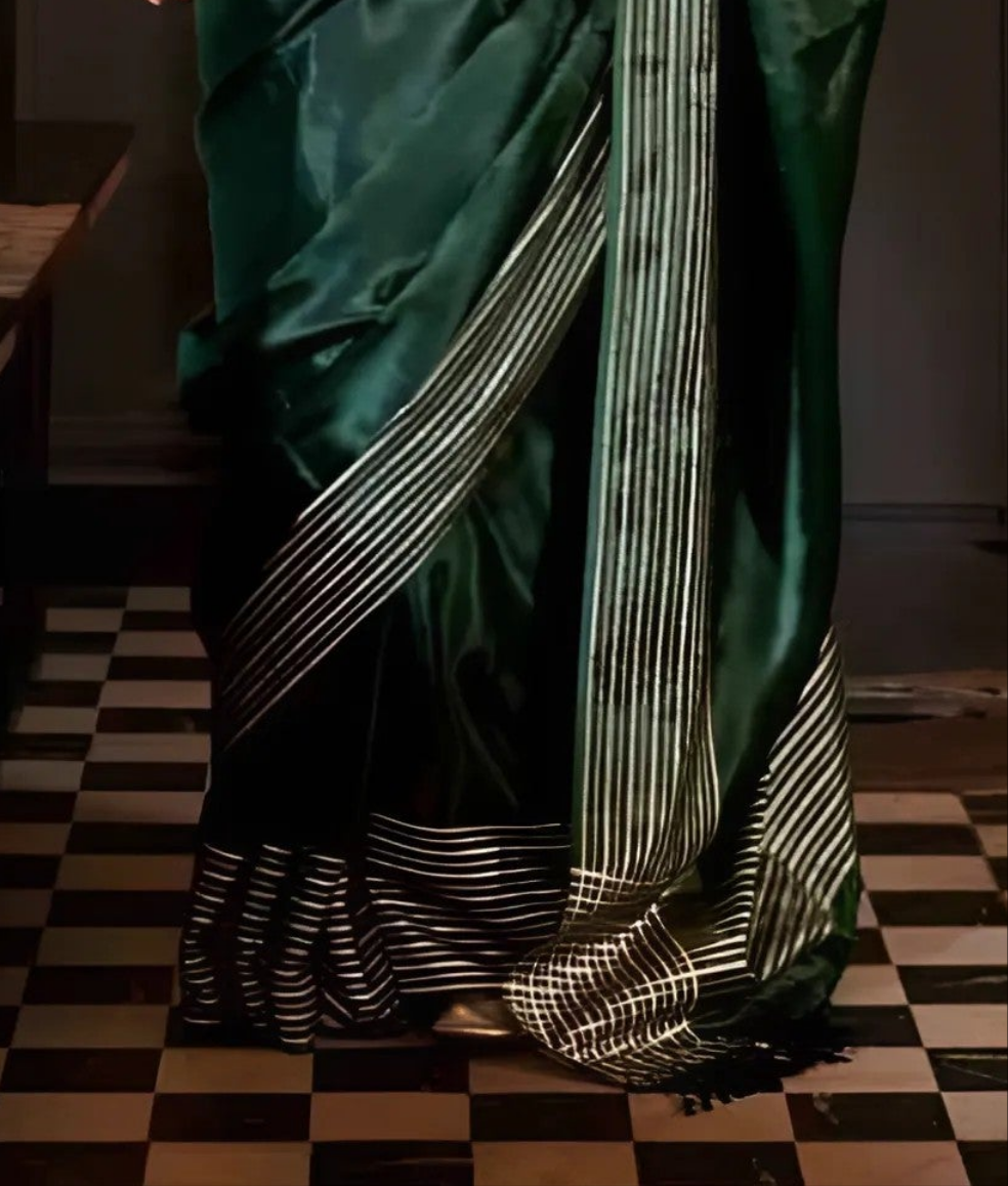 EKKTARA Saree For Women Bottle Green Colour Party Wear Designer Handloom Weaving Saree With Unstitched Blouse