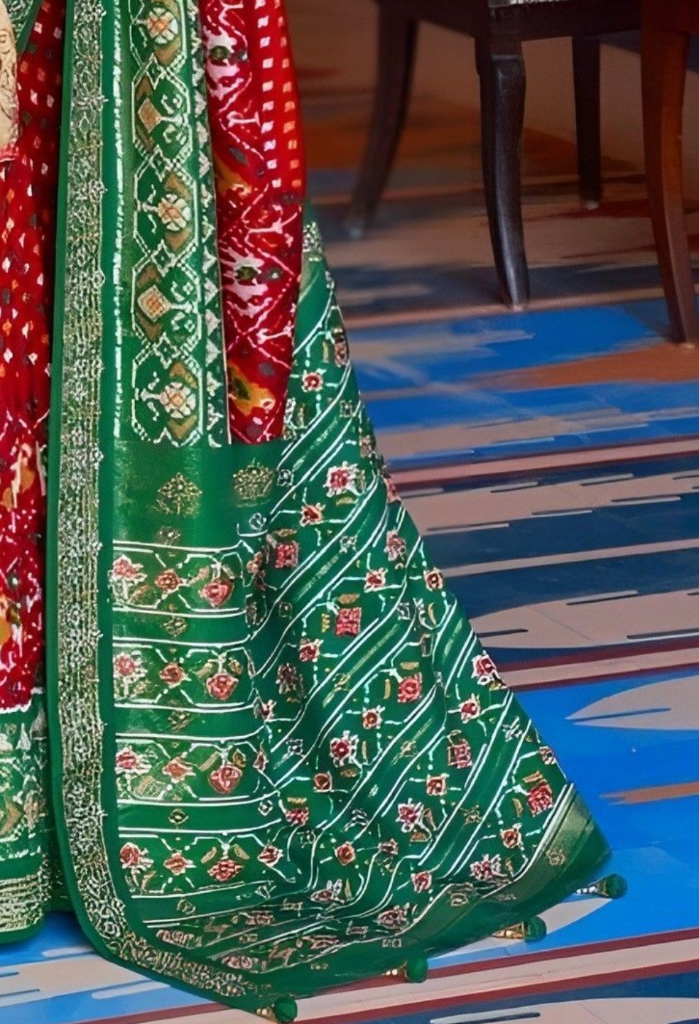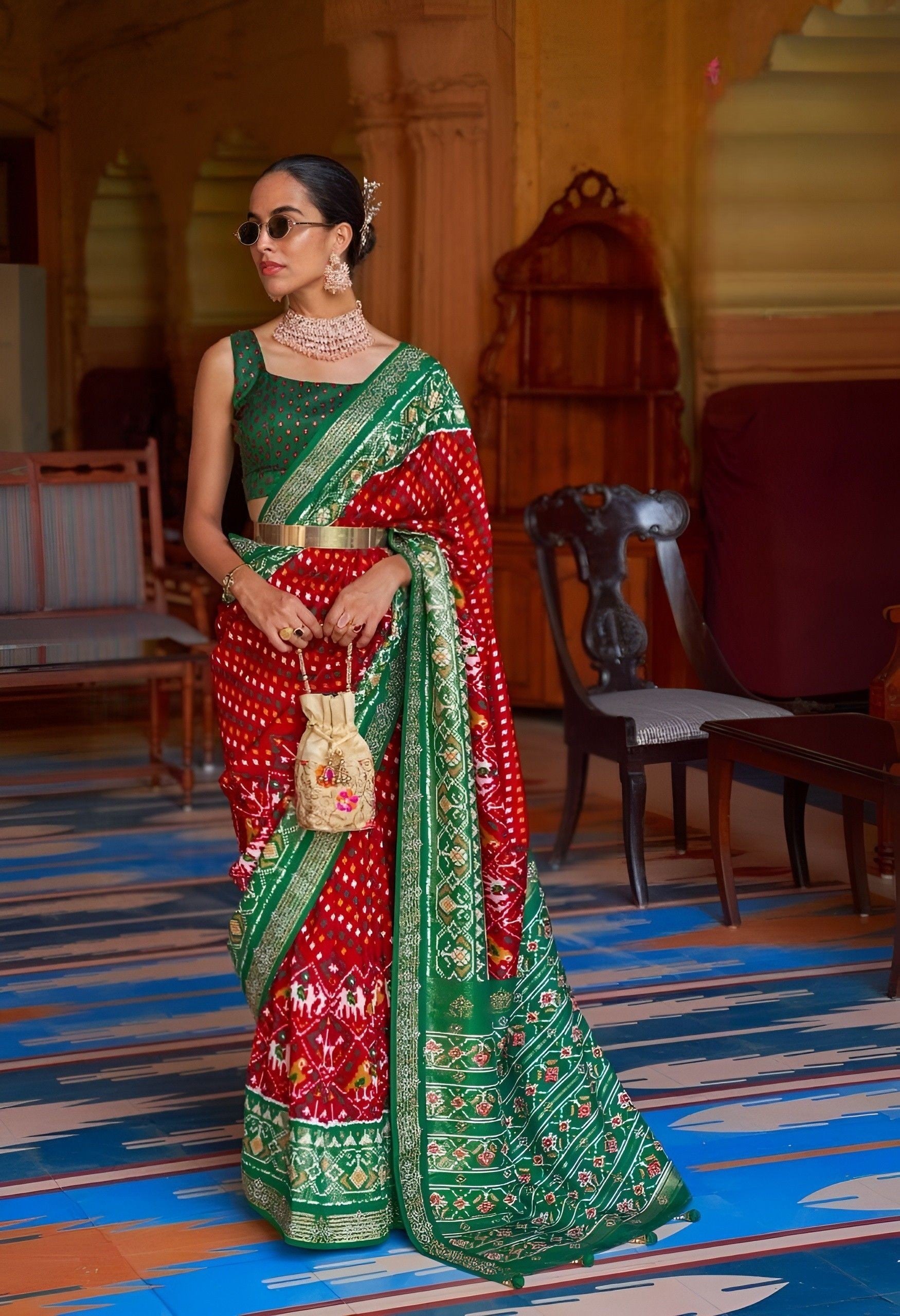 EKKTARA Saree For Women Red Colour Soft Silk Printed Patola Saree With Unstitched Blouse